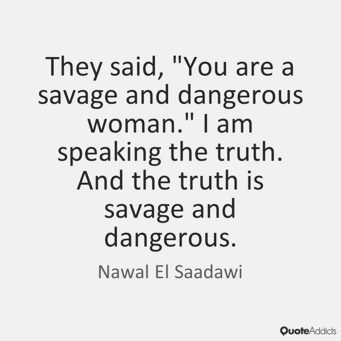 You know, i look to myself mainly as a creative writer all my life and a medical doctor. Her experiences working as a doctor in villages around egypt, witnessing prostitution, honour killings and sexual abuse, including female circumcision, drove her to give voice to this suffering. What would you say to a woman in this country who assumes she is no longer oppressed, who believes women's liberation has been achieved? Solidarity between women can be a powerful force of change, and can influence future development in ways favourable not only to. The only people who really live are those who are harder than life itself.', 'they said, you are a savage and dangerous woman. i am speaking the truth.